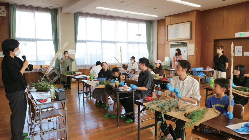 季節の草花を使ったスワッグづくりに挑戦!講師の解説を聞き皆さん素敵な作品が完成しました。