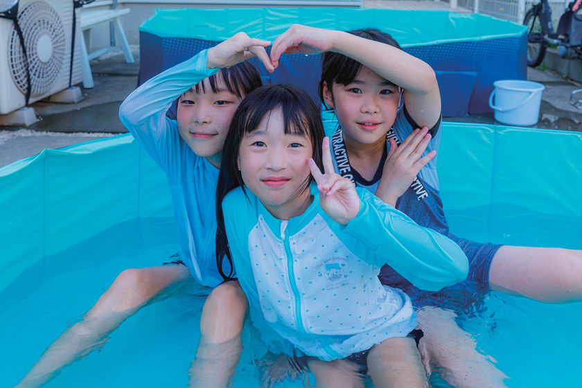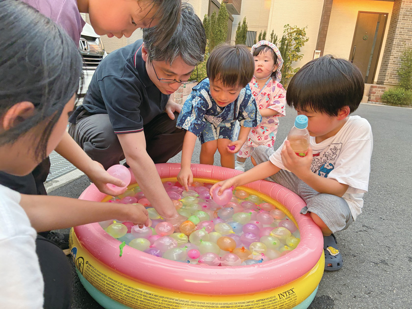 スーパーボールすくいや、花火で楽しく遊ぶ子どもたち。