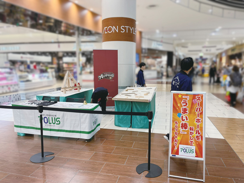 ブースにはポラス建築技術訓練校の施工事例作品や、棟下式のご紹介などの展示も