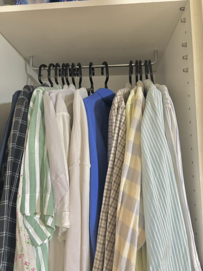 ハンガーを交換し、種類ごとに衣服を並べなおしました。