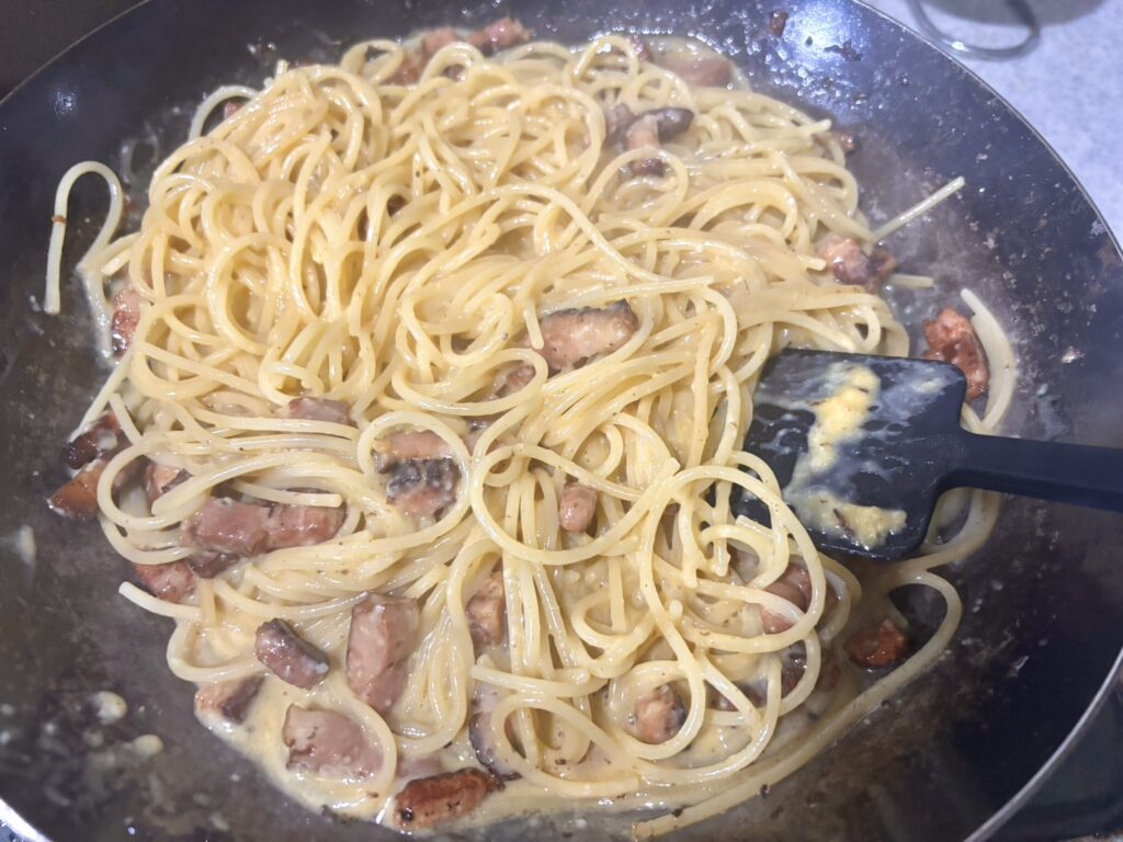 カルボナーラの失敗でよくあるのが、「卵に火が入りすぎて炒り卵状になってしまう」ケース。